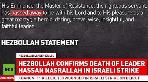 and their leader, Hassan Nasrallah. Massive grief and protests across Asia." US is complicit in all, goes without saying...