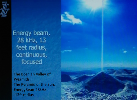 Pyramids Around the World & Lost Pyramids of Bosnia, by Dr. Sam Osmanagich, p: 295, and image right: EnergyBeam28kHz-13ft-radius