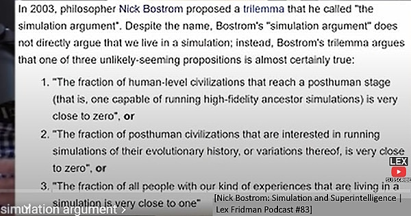 Nick Bostrom thinks that simulation/ancestral simulation is equally possible/probable as not. In fact: