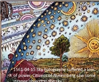 RE: 1561, 04-14th-15th, a sudden collapse of the cloaking field, in Nuremberg, revealed that a great black spear was seen in the sky;